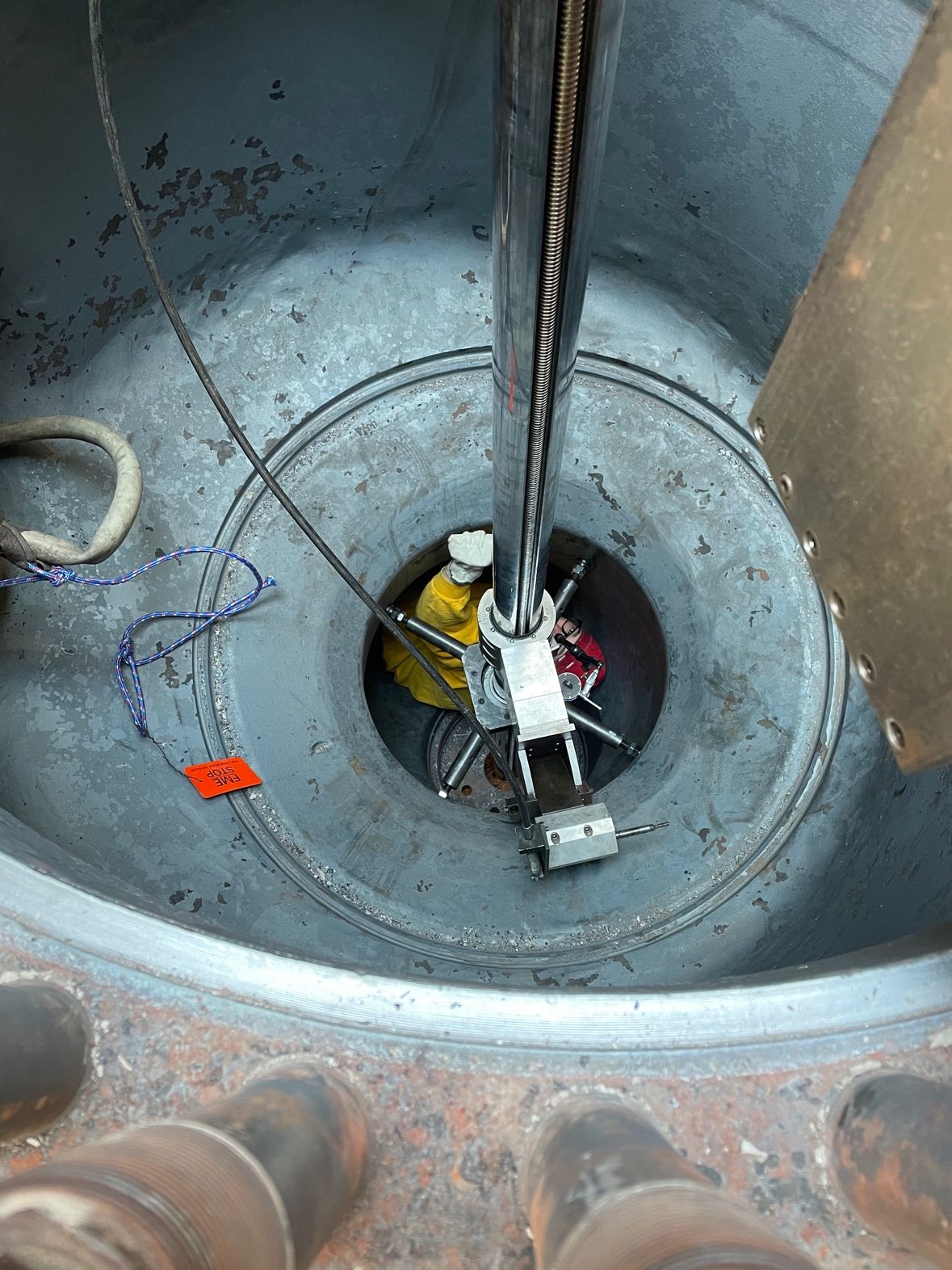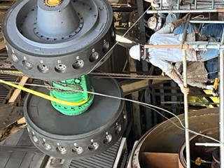 Single point machining combined reheat stop/intercept valve seat at Vistra Luminant GE 900 MW turbine in Texas. Just one of many seats now restored back to design specs by the Turbine group at T&W....